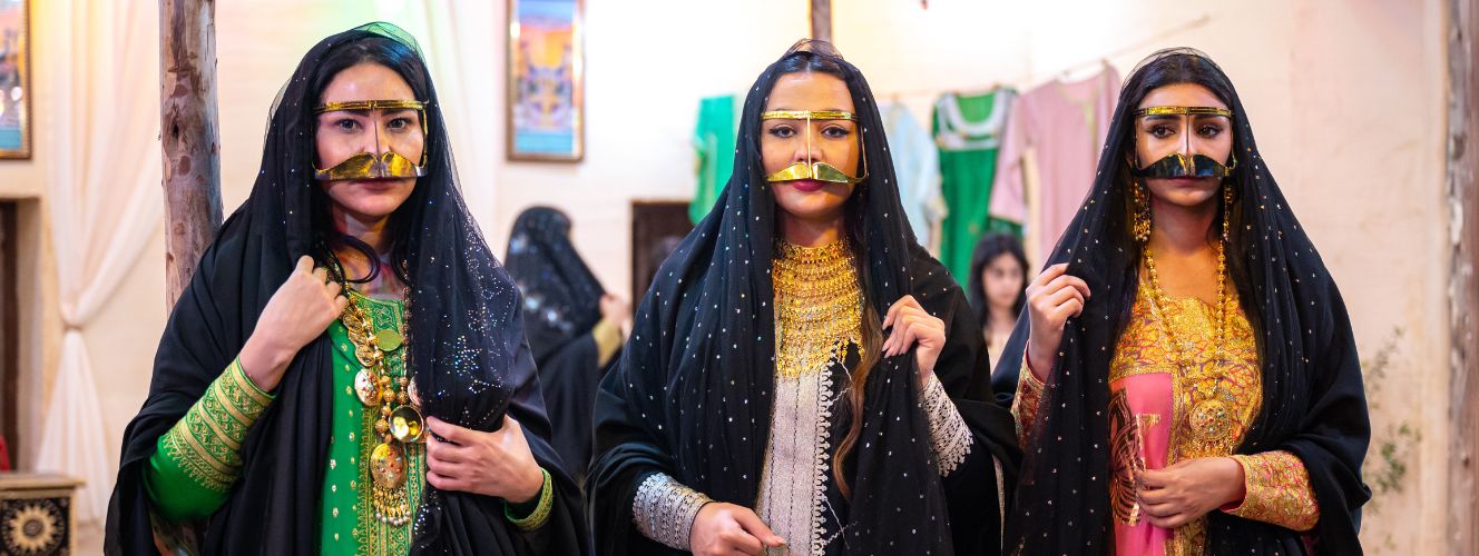 ومن أنواع الثياب التي كانت تلبسها العروس ثوب وكندورة ، مزراي، و باللون الأخضر أو الأزرق في الغالب كما تلبس سروال بو بادلة، والبرقع، ومن الذهب تلبس المرتعشة والكواشي والختم. كما تتزين بالحناء في يديها ورجليها، وبالبضاعة والياس في شعرها. وبالزعفران على خديها " الزعفران الشامي على الخدود رضوف"