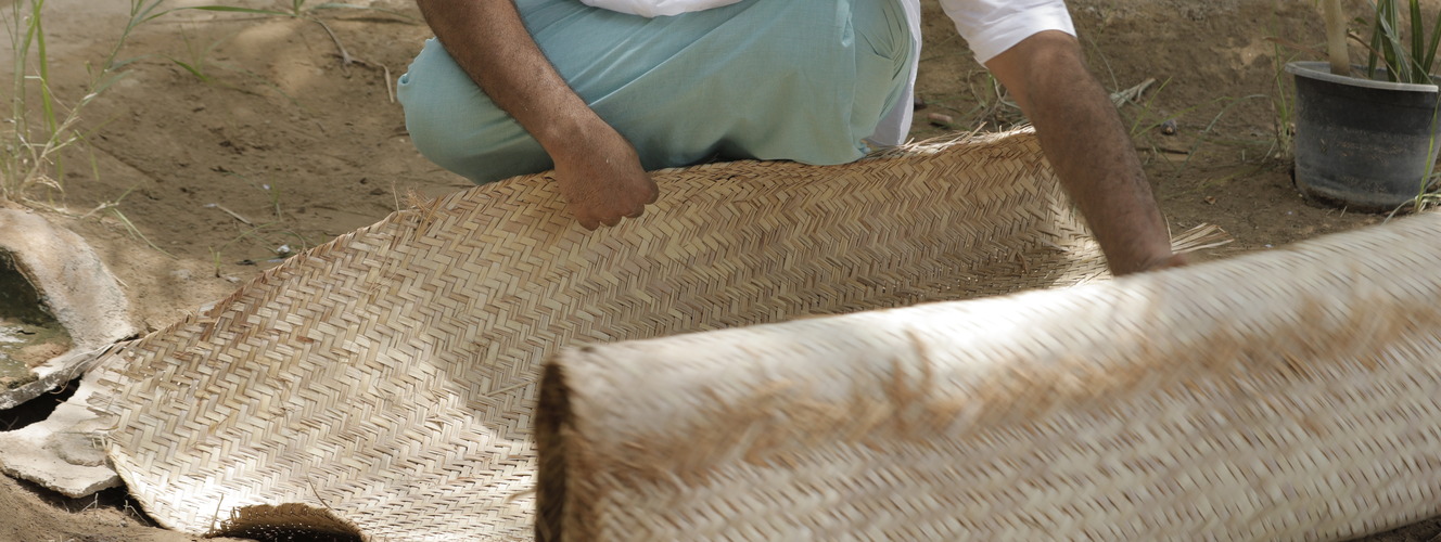 وهناك أغراض عديدة ضمن أثاثات البيت، تُصنعها النساء من سعف النخيل، وتزركشها برسومات مختلفة وألوان زاهية، مثل المهفة وهي عبارة عن مروحة يد، تُستعمل للتهوية. والمكنسة أو المخمه أو المكشه، التي تُستخدم كأداة لتنظيف البيت من الأوساخ. ويسمونها العسوإذا صُنعت من فروع النخيل بعد أخذ التمر منها، وتُستخدم مثل المخمة في تنظيف البيت أو لنظافة المزرب "مكان الحيوانات". ومن سعف النخيل أيضاً، تُصنع الجربان وهي عبارة عن وعاء يحمل فيه التمر، يُصنع من سعف النخيل، ويكون بأحجام مختلفة، كما أنّ هناك أيضاً من سعف النخيل الجفير، والزبيل، والقفة وكلها أوعية أسطوانية على شكل سلال، تُصنع بأحجام وأشكال مختلفة حسب الأغراض التي تُستخدم فيها، ولكنها في الغالب تكون بفتحة وتُستخدم لحمل الخضروات أو الأسماك من البحر، أو تُستخدم لجمع الرطب من عذق النخلة، كما يُستخدم بعضها لحمل الرمل لبناء البيت. وأيضاً هناك مصنوعات تُصنع من سعف النخيل بأحجام مختلفة، وتُستخدم لأغراض أخرى مثل المشب الذي يُستخدم لإشعال النار وتحميتها، أو لتحريك الهواء لتبريد الطعام وبخاصة للأطفال، في حين المغطى أو المغاطي وهو الغطاء الذي يحمي المائدة من الحشرات، والسلة ومعها الغطي الذي تغطى به، وتُستخدم عادة لحفظ الملابس والأغراض المختلفة، والمغمره وهي سلة يغسل فيها التمر ويترك ليجف، والكاشونة أيضاً سلة طويلة يُوضع فيها الرطب.
