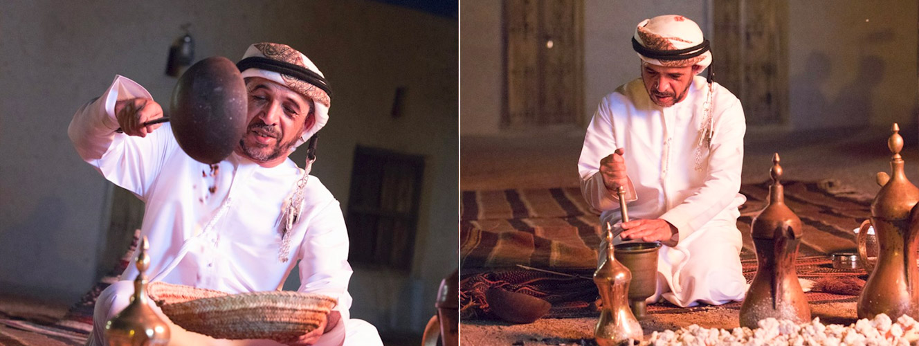 تعكس القهوة كرم الضيافة الذي يشتهر به المجتمع الإماراتي. ويمثل تقديم القهوة العربية جزءاً أصيلاً في تراث الضيافة وإظهار المودة، حتى أصبحت تقليداً وطنياً. كما أنها أصبحت رمزاً للوحدة والتلاحم والحفاظ على الروابط الاجتماعية والسياسية والثقافية والتي ساعدت في تشكيل بنية المجتمع الإماراتي وتماسكه على ما هو عليه اليوم. ويعد حضور القهوة العربية الدائم في جميع المناسبات الخاصة والعامة خير دليل على مكانتها الكبيرة في التراث الإماراتي. فنكهة القهوة العربية جذابة تبعث على البهجة والسرور، ويستهوي شذاها جميع فئات المجتمع.