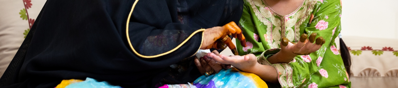 Many women have mastered the craft of henna and were known to the community as the al muhannya or al hannaya. Henna rituals were accompanied by many traditional arts inherited in the various cities and towns of the Abu Dhabi emirate. Also, Emirati women have used henna dye since ancient times, following the example of the Messenger of God, peace be upon him. There are also many accounts about the sources of henna, some of which are local and while others are imported from some countries such as Oman, India and Iran.