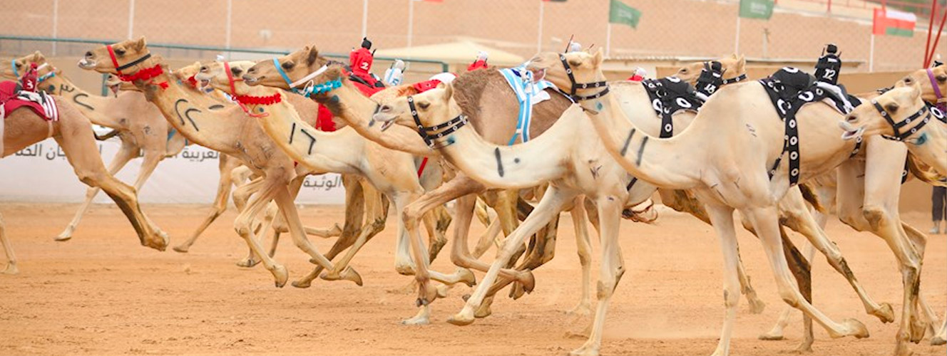 Camels are selected based on type, origin and age and are given a special diet. They practise on the racetrack in groups and are trained to take part in the races. Camel racing is conducted on specially designed fields under the supervision of specialised community committees. Usually, there are between fifteen and twenty racing camels in each round, and the racing distance is determined based on the camel’s age.