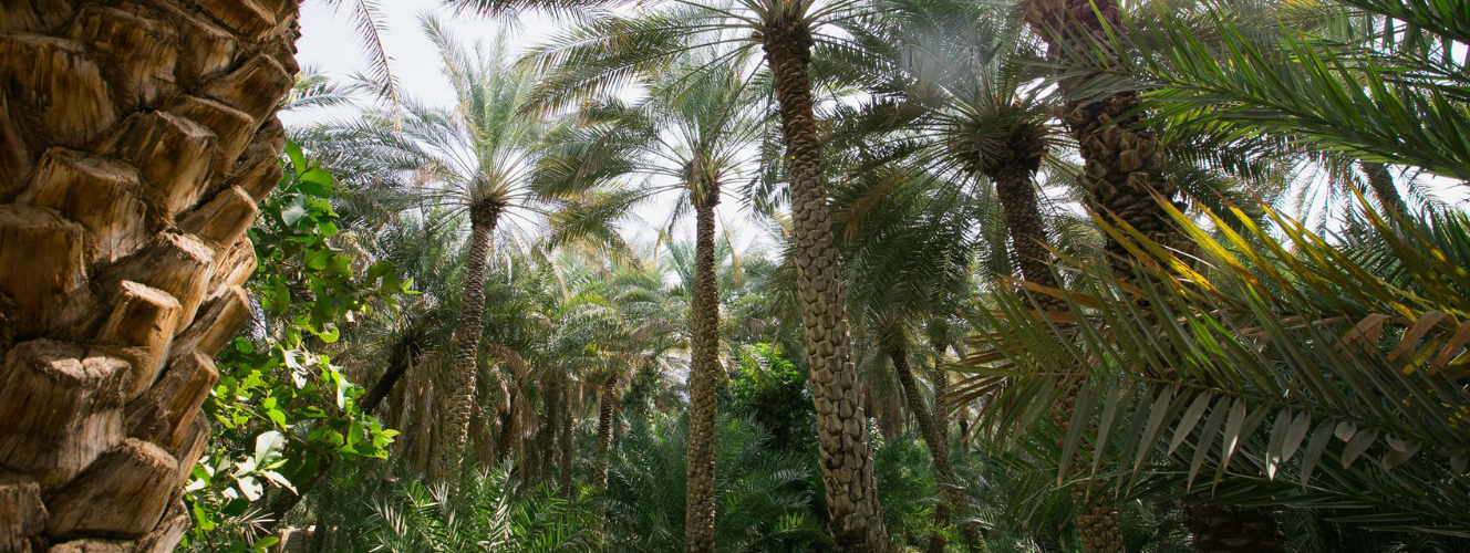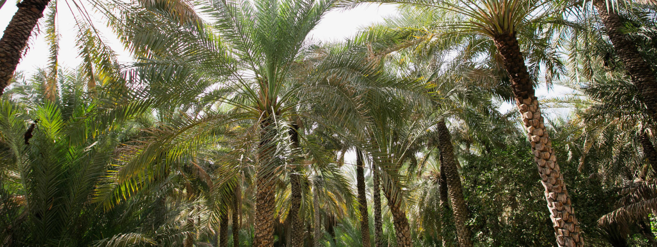 Typically found in deserts and dry, temperate climates, the date palm is an evergreen plant with roots that deeply penetrate the earth in search of humidity. Date palms grow in oases in desert areas with suitable water levels for irrigation.