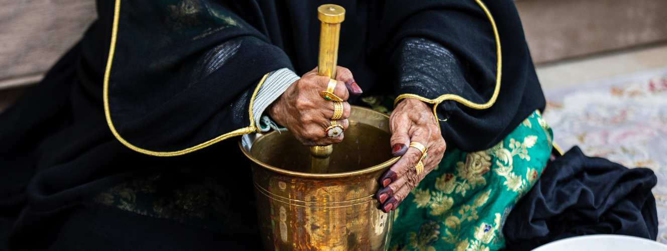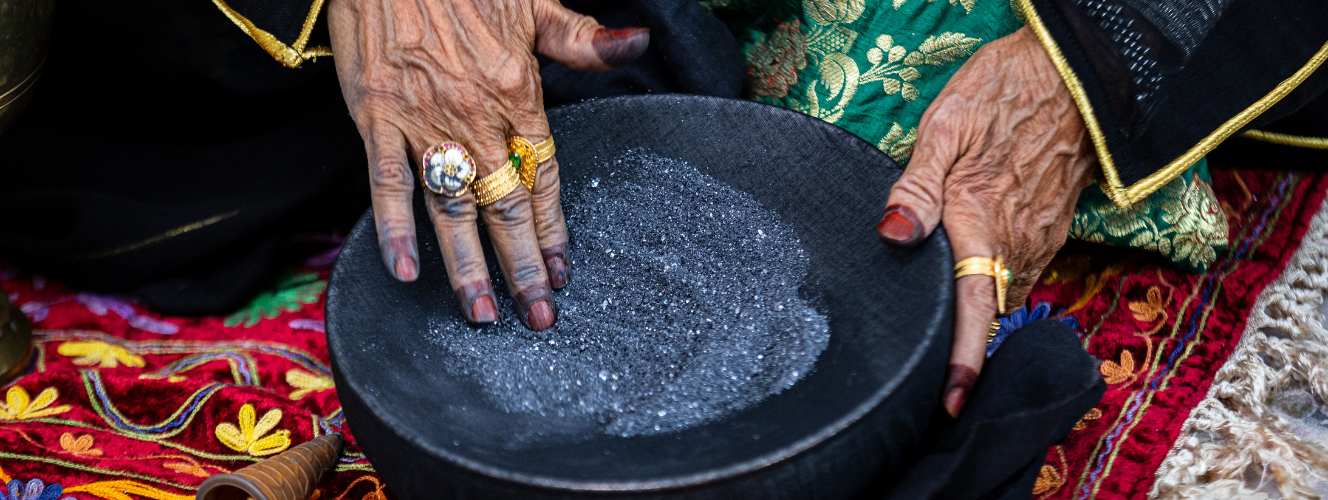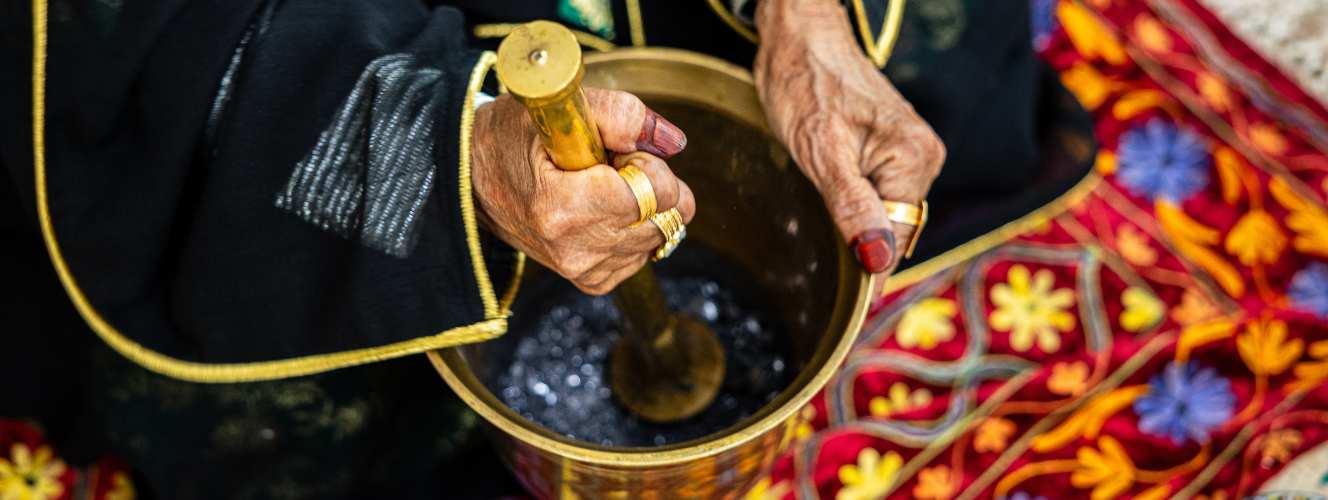 Emirati women have long cared for their beauty and making use of natural materials available in their environment. They refined their knowledge and skill in preparing and applying traditional kohl, known locally as jahal.