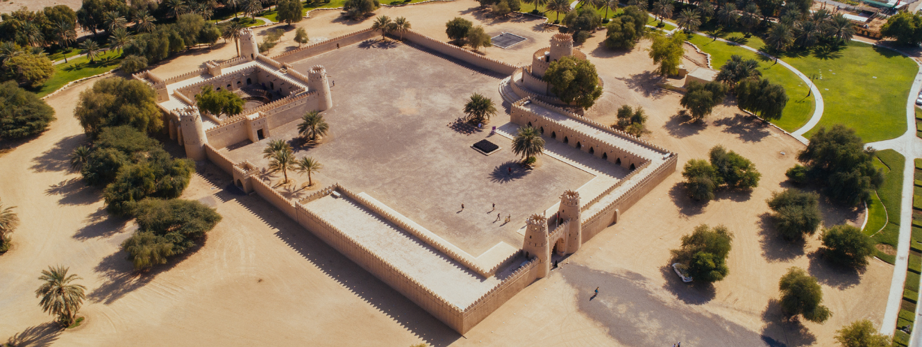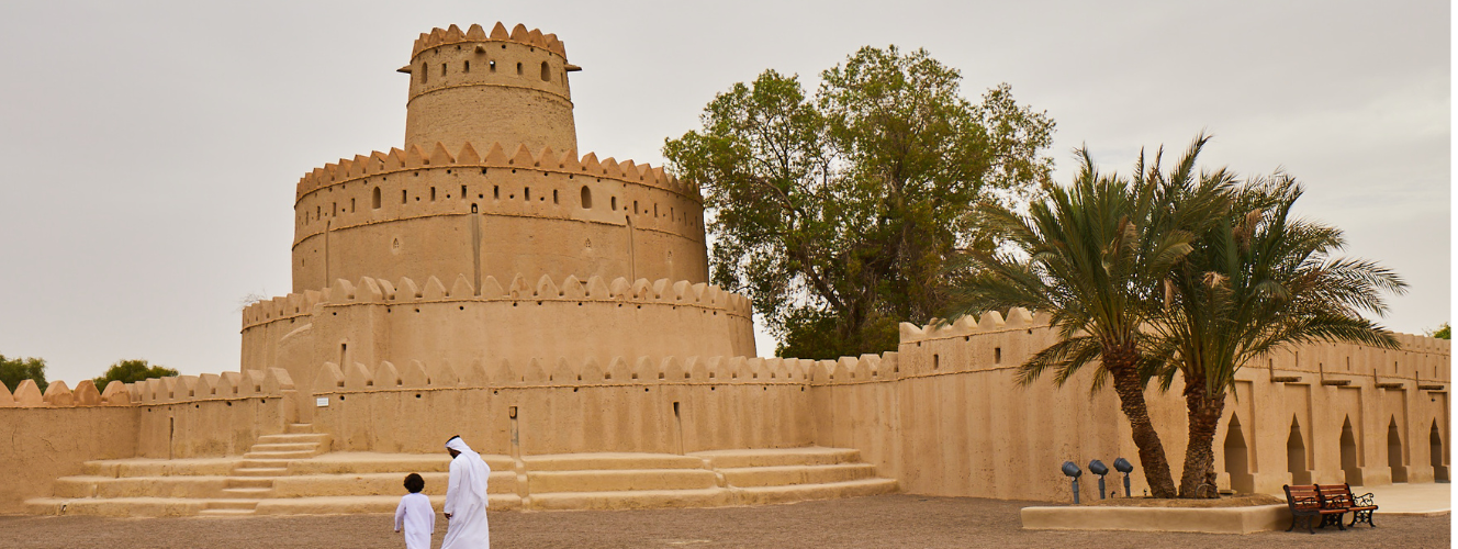 Al Jahili Fort, one of the largest forts in the United Arab Emirates, was built in the late 19th century by Sheikh Zayed bin Khalifa Al Nahyan, Zayed the First (r. 1855–1909), both as a symbol of power and as a royal summer residence. The original fort consisted of a square fortified enclosure and a distinctive four-storey circular tower.